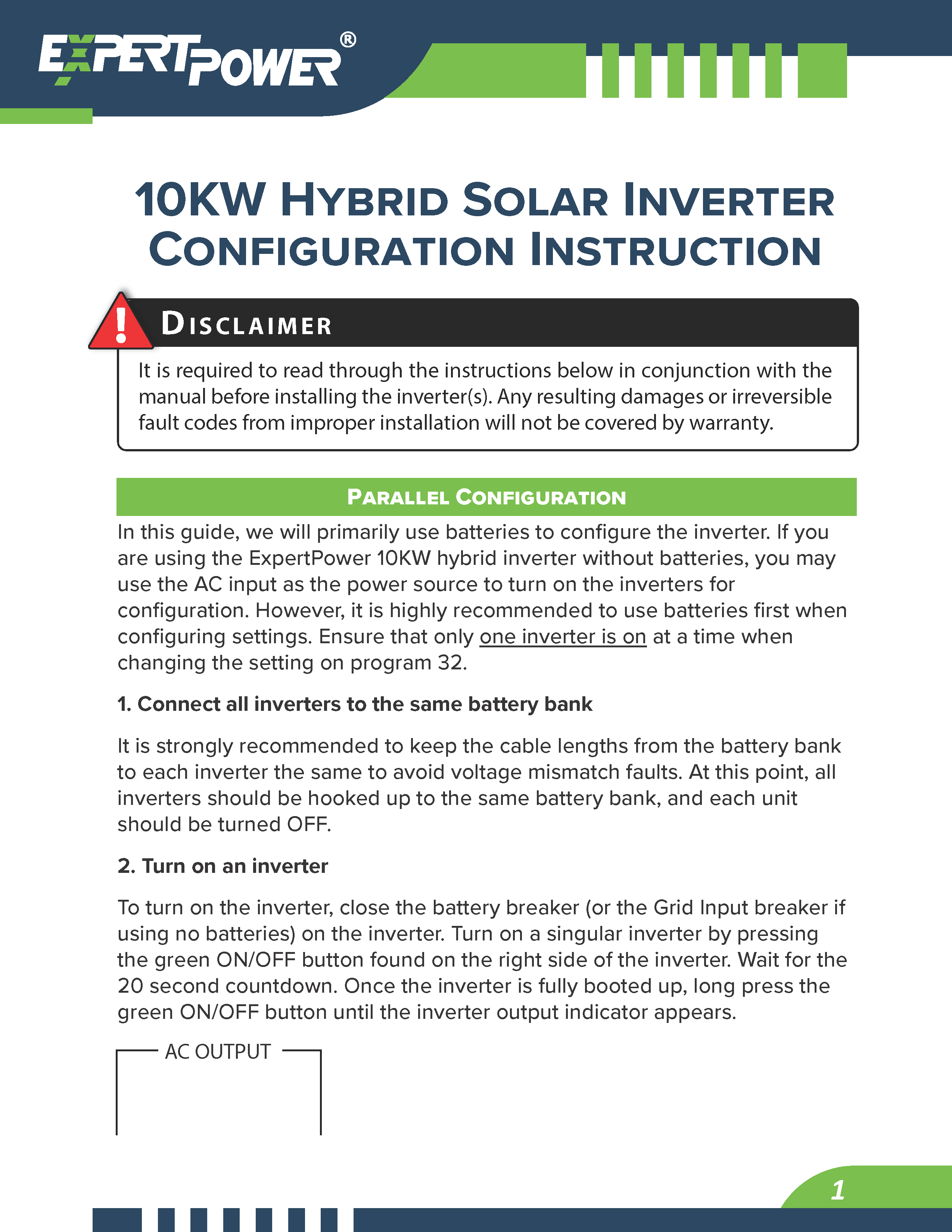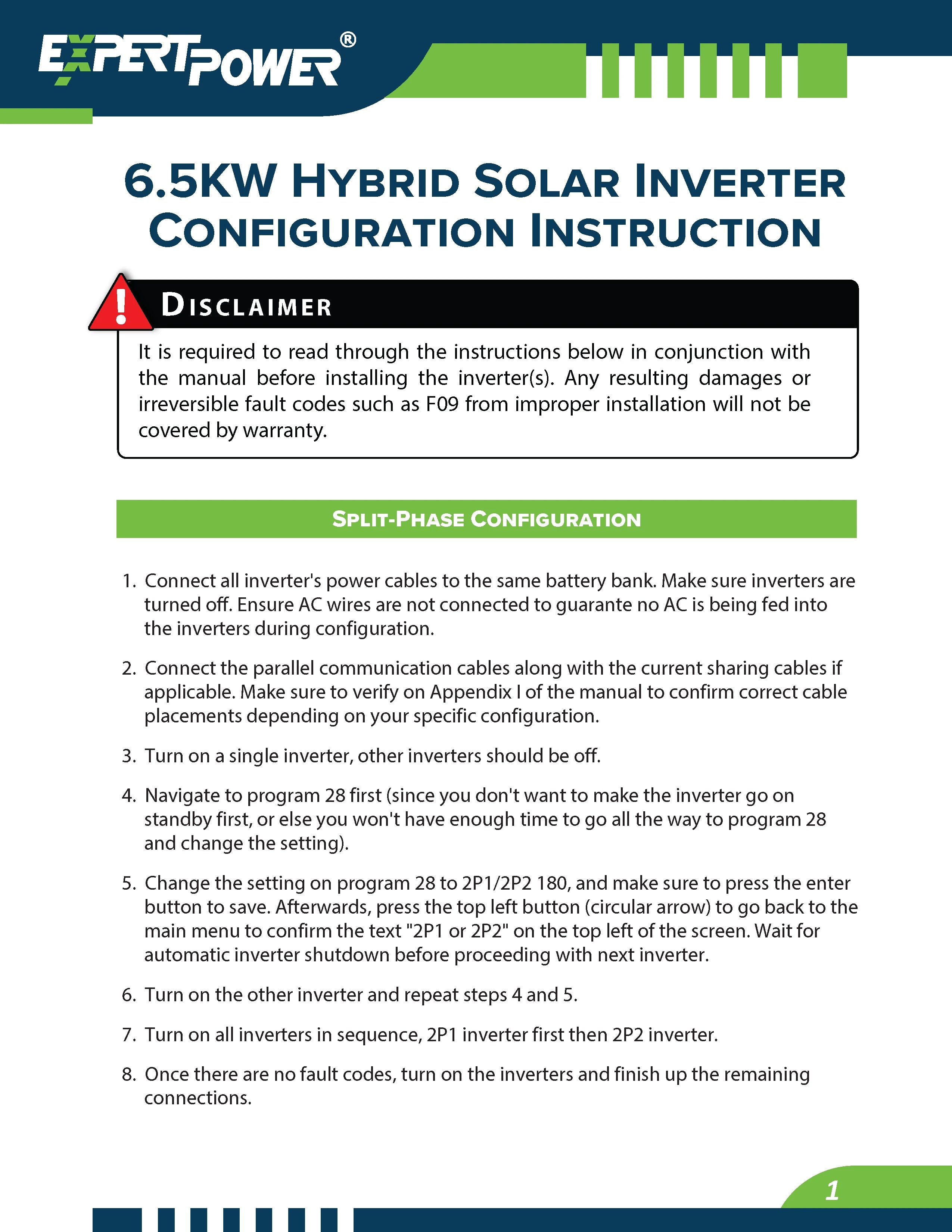 Learn how to finish setting up a parallel or split-phase solar power system with ExpertPower's 6.5KW hybrid inverters.