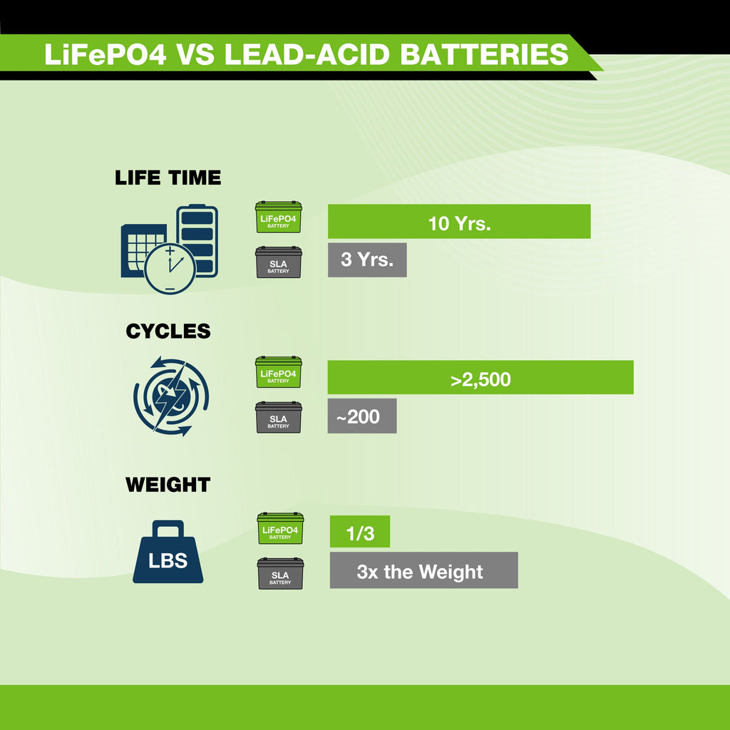 Unique built-in Battery Management System (BMS) protects our LiFePO4 batteries from overcharge, deep discharge, overloading, overheating, short circuit, and excessive low self-discharge rate. This built-in system can ensure up to 1-year of maintenance-free storage.