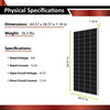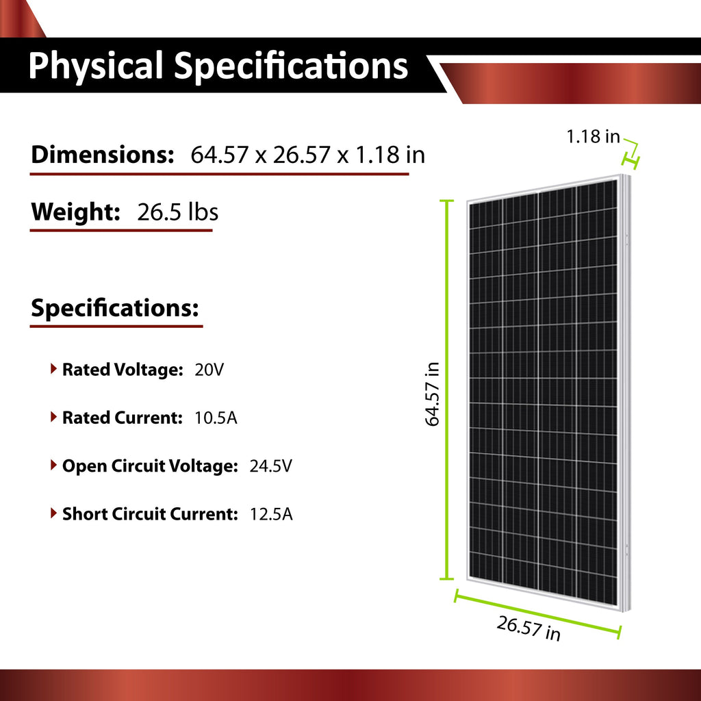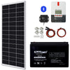 该高级太阳能系统套件包括一个 210W 太阳能电池板和一个带蓝牙模块的 20A MPPT 太阳能充电控制器、一个 12V 100Ah AGM 深循环电池、一对 10 英尺 12AWG 太阳能电缆、一对 6 英尺 12AWG 电池电缆以及一套太阳能电池板安装支架。